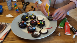 Hallo! Ich heiße Clara und bin 9 Jahre alt. Ich suche eine Brieffeundin, mit der ich regelmäßig Briefe schreiben kann. Die Fotos zeigen meine Wonderwaffle im Laden in Würzburg und mich beim Halloween Kekse verziehren